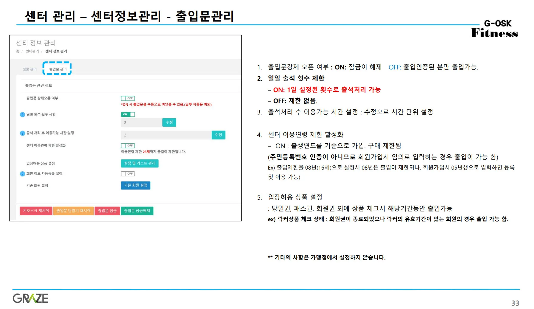 ‘센터 관리→ 직원관리 —> 직원 출입 관리’ 으로 이동