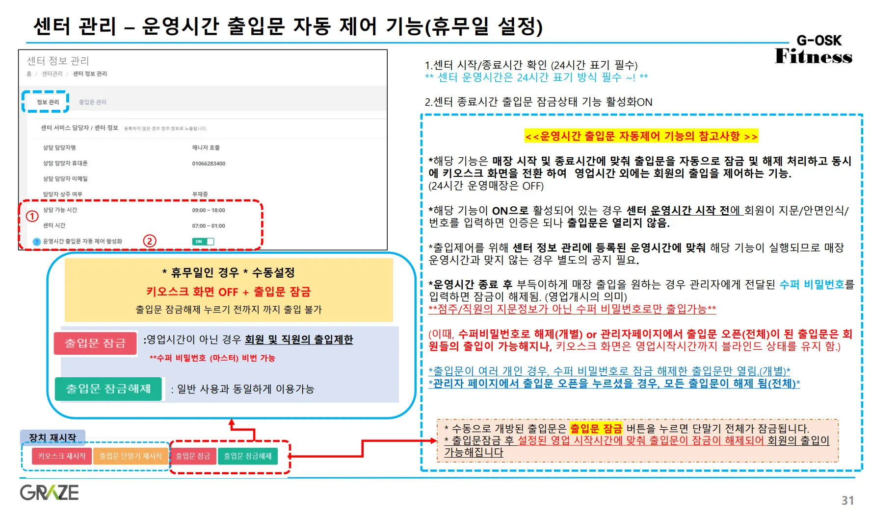 출입문 수동제어의 경우를 꼭 확인하여 주세요 (휴무일 경우 설정)