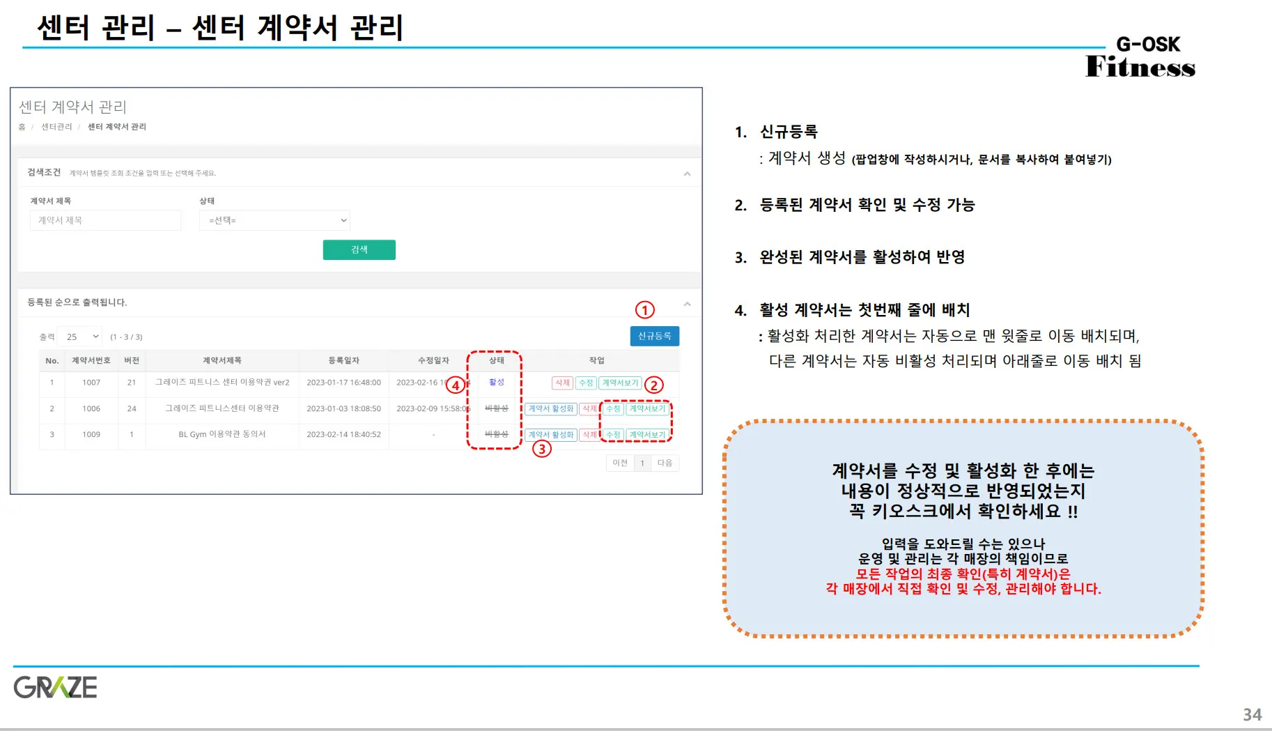센터 계약서 신규 등록 및 수정 (실시간 반영)