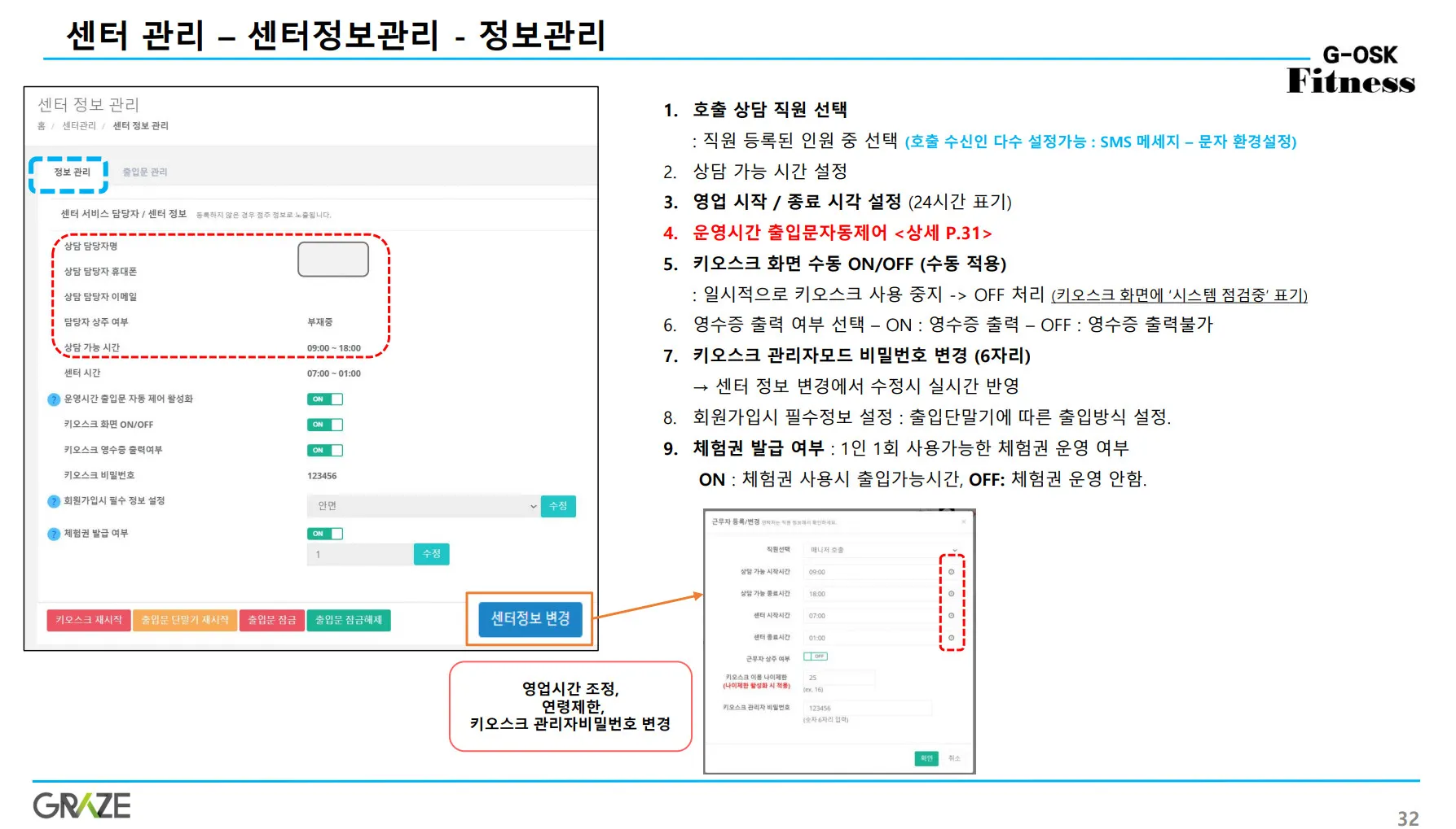 하단에 있는 ‘센터 정보 변경’ 버튼으로 정보 변경 (실시간 반영)