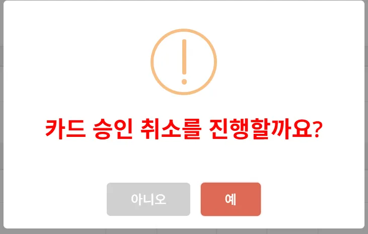 **처리시 상품종료와 함께 카드승인이 취소되어 환불되어 팝업으로 2번 확인하게 됩니다.