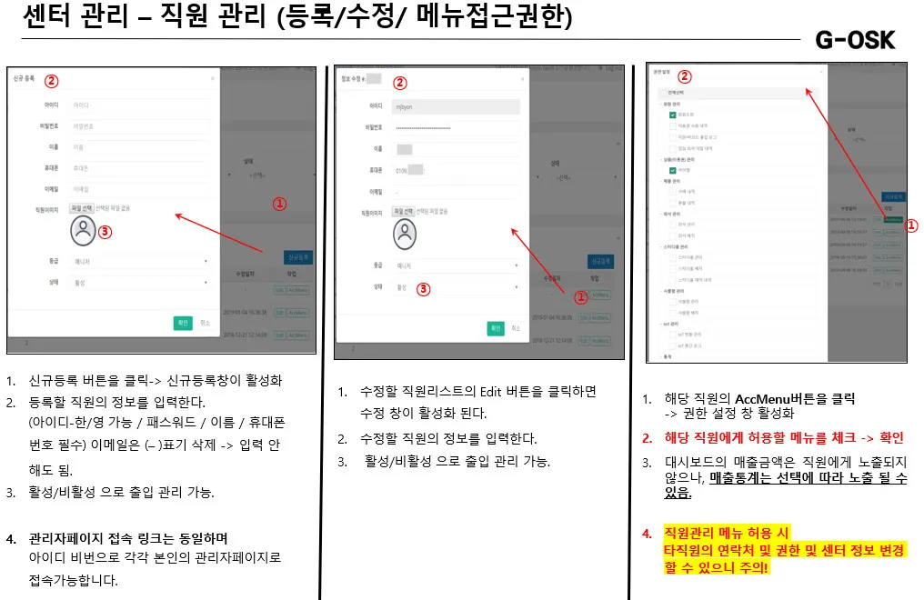 3-1. 직원 등록 , 수정, 메뉴접근권한