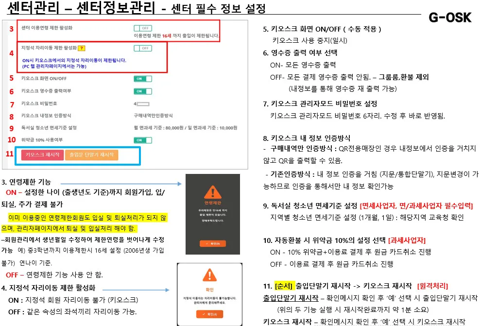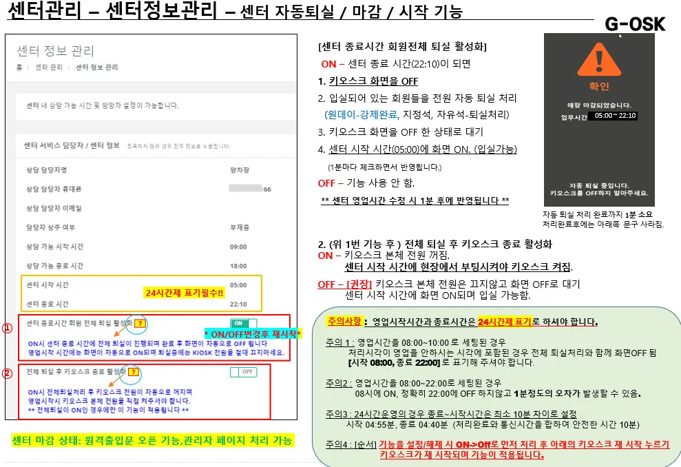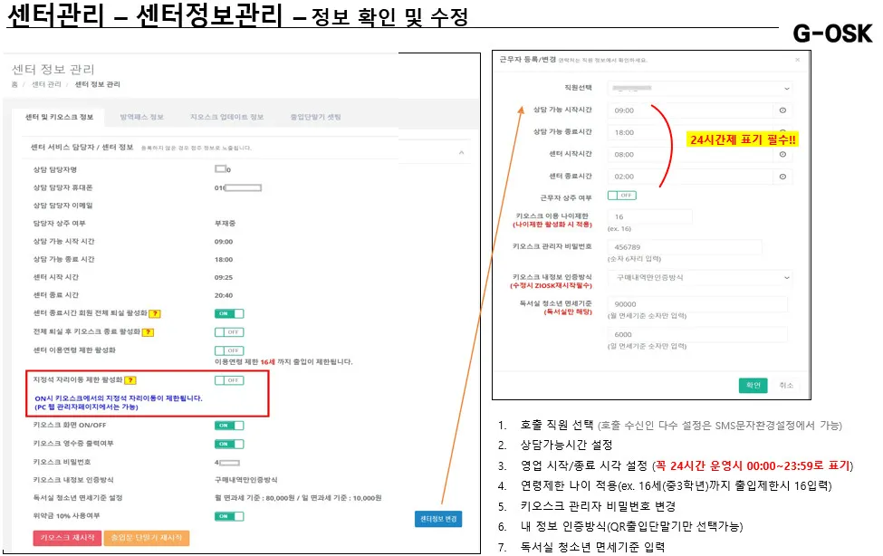 ‘센터 및 키오스크 정보’ 에서 센터 정보 확인 및 수정