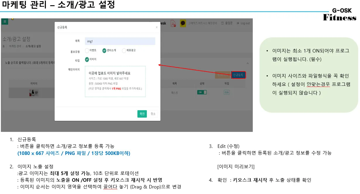 ‘신규등록’ 버튼 또는 ‘Edit’ 버튼 클릭 하여 사진 등록 가능