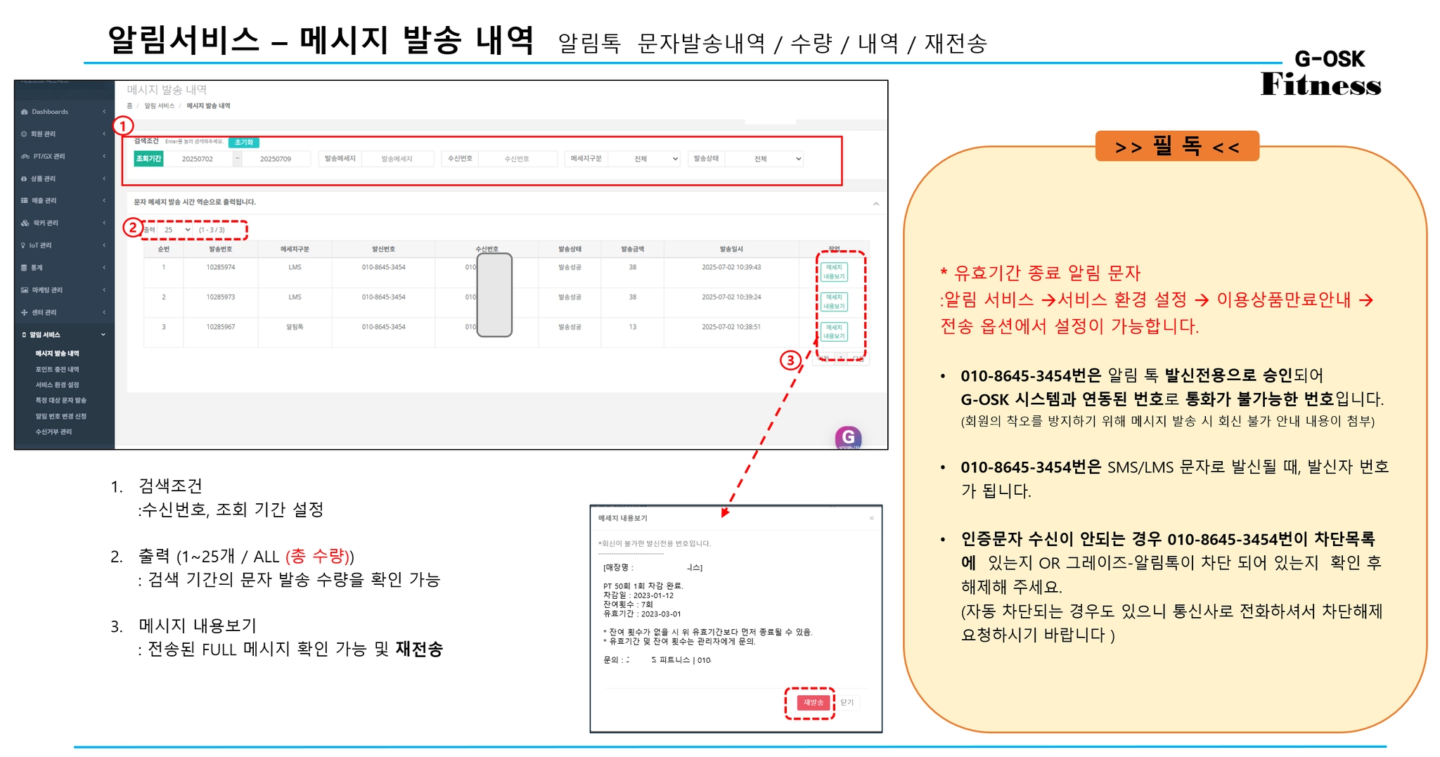 발송내역에서 회원번호와 일자로 검색하셔서 동일한 메세지를 재전송 처리 할수 있습니다.
