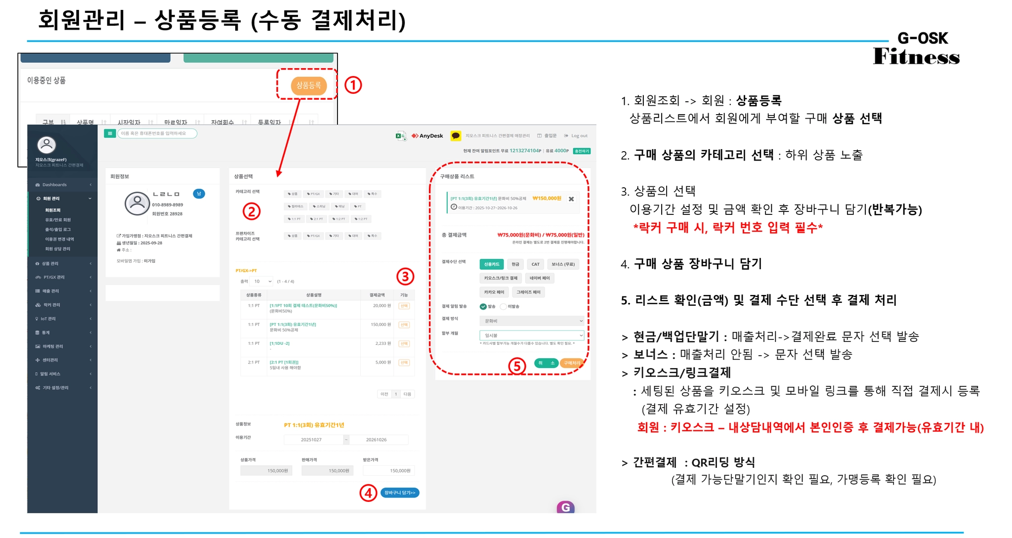 ‘회원 조회’에서 상품 등록 처리 할 회원님을 클릭 해주세요.