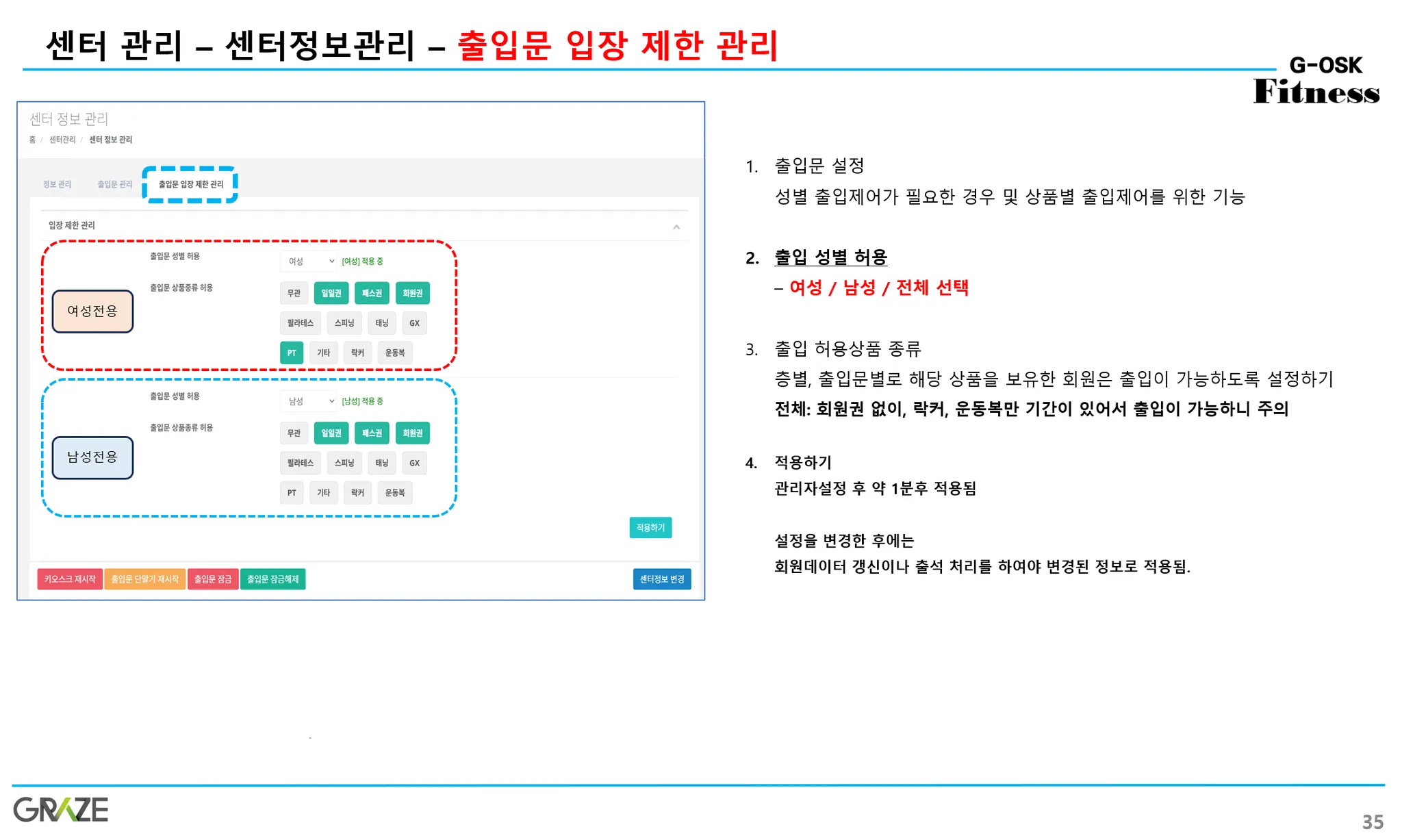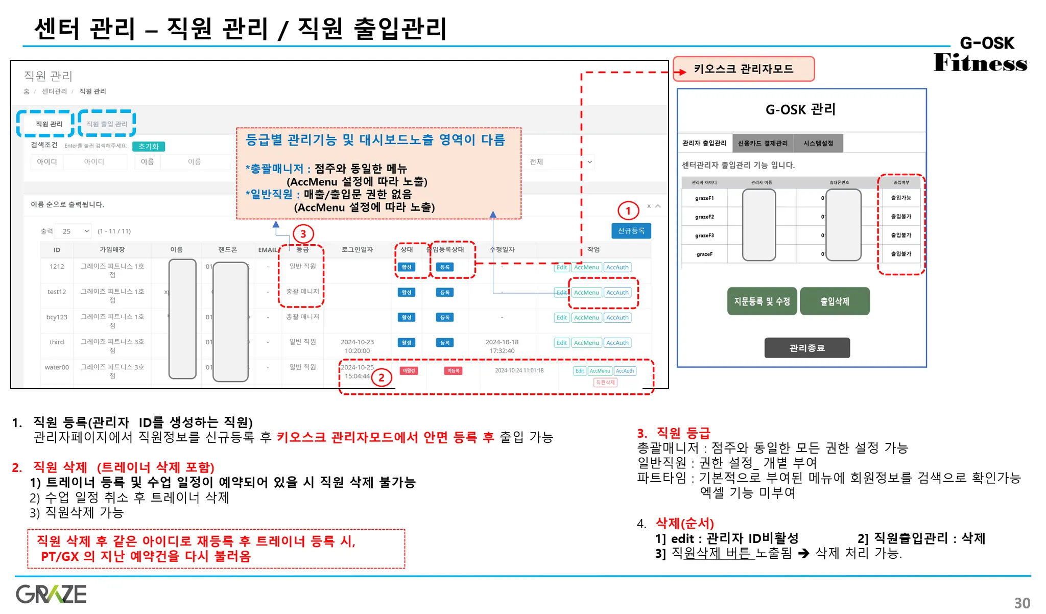 ‘센터 관리→ 직원관리 —> 직원 출입 관리’ 으로 이동